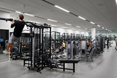 The first stop on this tour takes us to Towson University's Campus Recreation Center, which opened a 94,000 square-foot expansion and renovation in 2018 for a total of 235,000 square feet. The recreation and fitness center includes 22,000 square feet of fitness floor space; an indoor pool; multipurpose wood-floored gymnasiums and rubber-floored activity courts; five fitness studios, including a skills studio with a retractable heavy bag system, speed bags and other equipment used for boxing; a sprint hill; a functional training area complete with turf flooring; and a new outdoor adventure center. Fitness Floor 2 of Burdick Hall will be gaining a new individualized workout space area. This area will be state-of-the-art and offer a range of equipment from kettlebells, dumbbells, battle ropes, resistance bands and more! The space is slotted to be opened in Fall 2023.